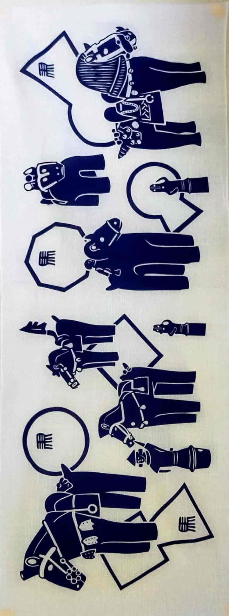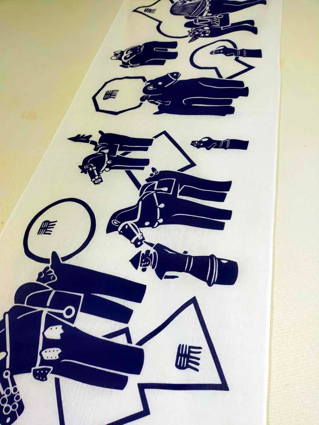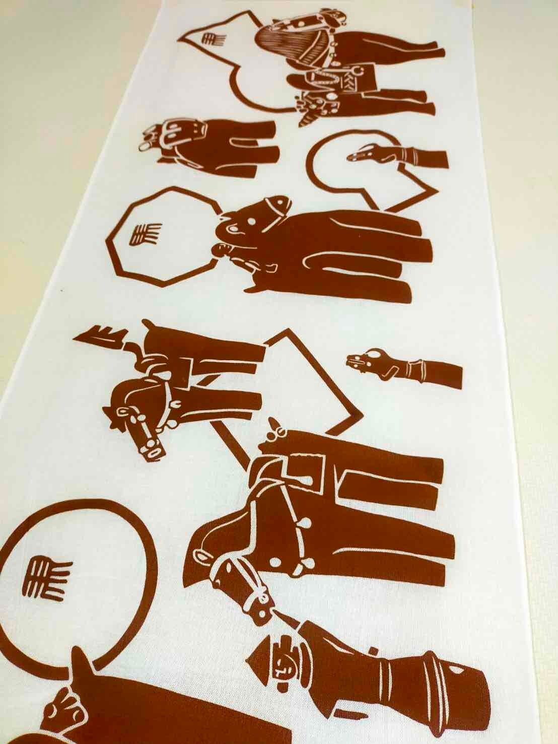 なかでも馬という文字を左右逆さまにした「左馬(ひだりうま)」は、古くから招福の象徴とされてきたそうで、それならばとてぬぐいに盛り込んでみました。